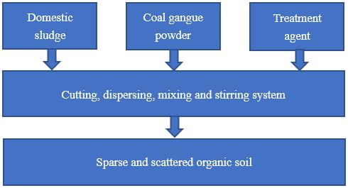 2. Domestic sludge, coal gangue powder and treatment agent enter the "system" through closed conveying device respectively, and after about one minute, the sparse and scattered organic soil is output from the "system".