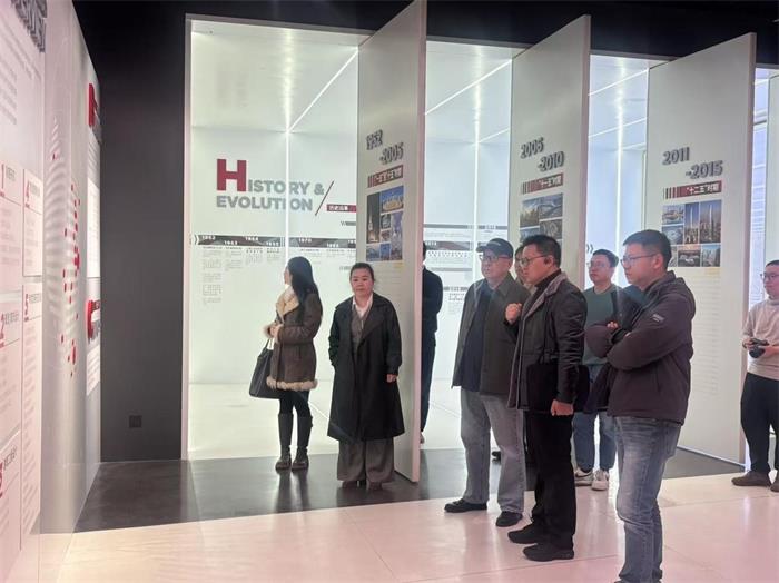 During the inspection, the delegation first visited the corporate exhibition hall. ECADI gave the delegation a detailed introduction to its core businesses, covering airport hubs, headquarters and industrial parks, key urban cultural facilities, super high-rise complexes, urban central area renewal and development, medical and elderly care, exhibition complexes and other fields. A series of landmark projects, including Shanghai Pudong International Airport Terminal 3, the Headquarters Building of the New Development Bank (NDB), the Expo Museum, the new CCTV Headquarters, and the National Exhibition and Convention Center (Shanghai), fully demonstrated ECADI’s strong strength and comprehensive capabilities in high-end engineering design.